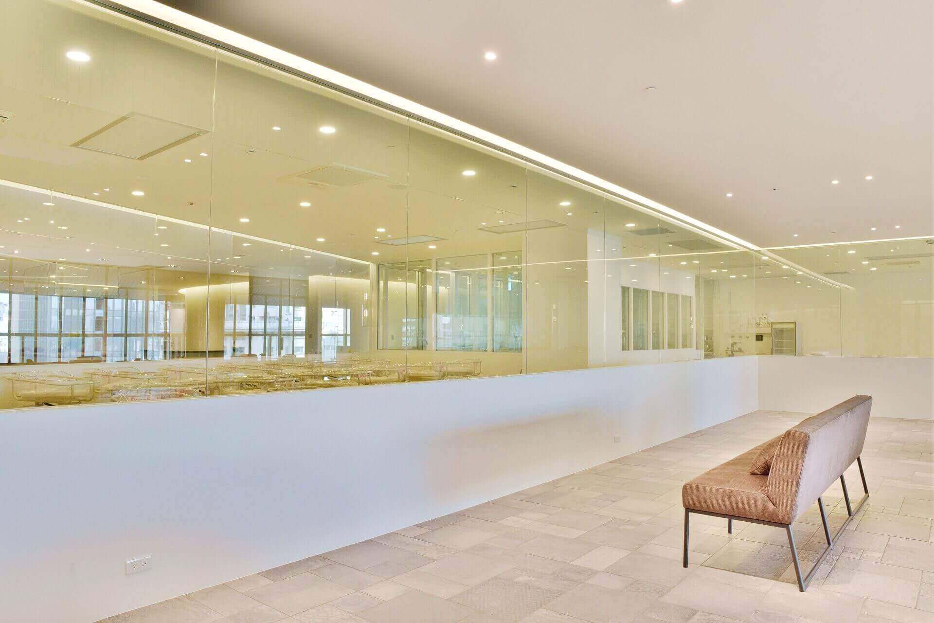 - 接待臺(tái)后方可以設(shè)置公司標(biāo)志,以及一些舒適的等候座椅。